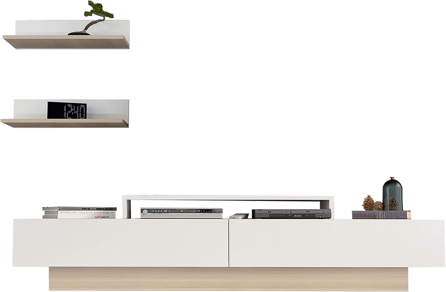 Homidea Mimosa Wall Unit Tv Lowboard Tv Stand Living Room Furniture Set In Modern Design Sonoma White