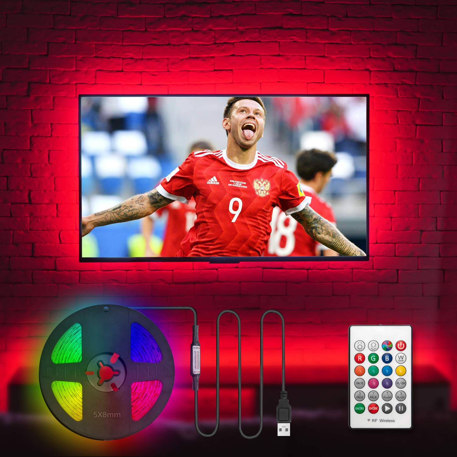7 5ft 2 3m Lampu Led Strip Untuk 40 60 Hdtv Tv Wall Mount Tahan Air Led Lampu Latar Dengan 360 Rf Remote 20 Warna Dan 20 Mode Led Strip Aliexpress