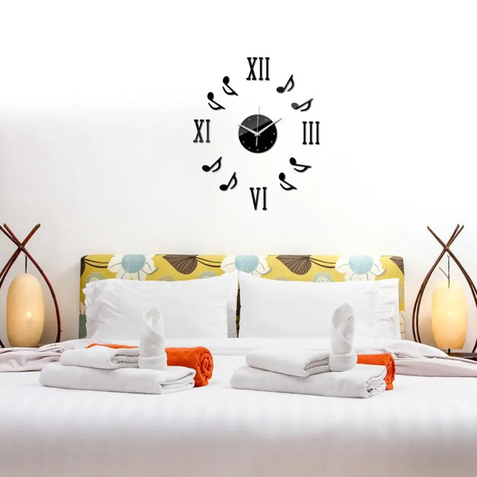 Modern 3d Note Analog Ultra Silent Wall Clock Sticker Mirror Decal