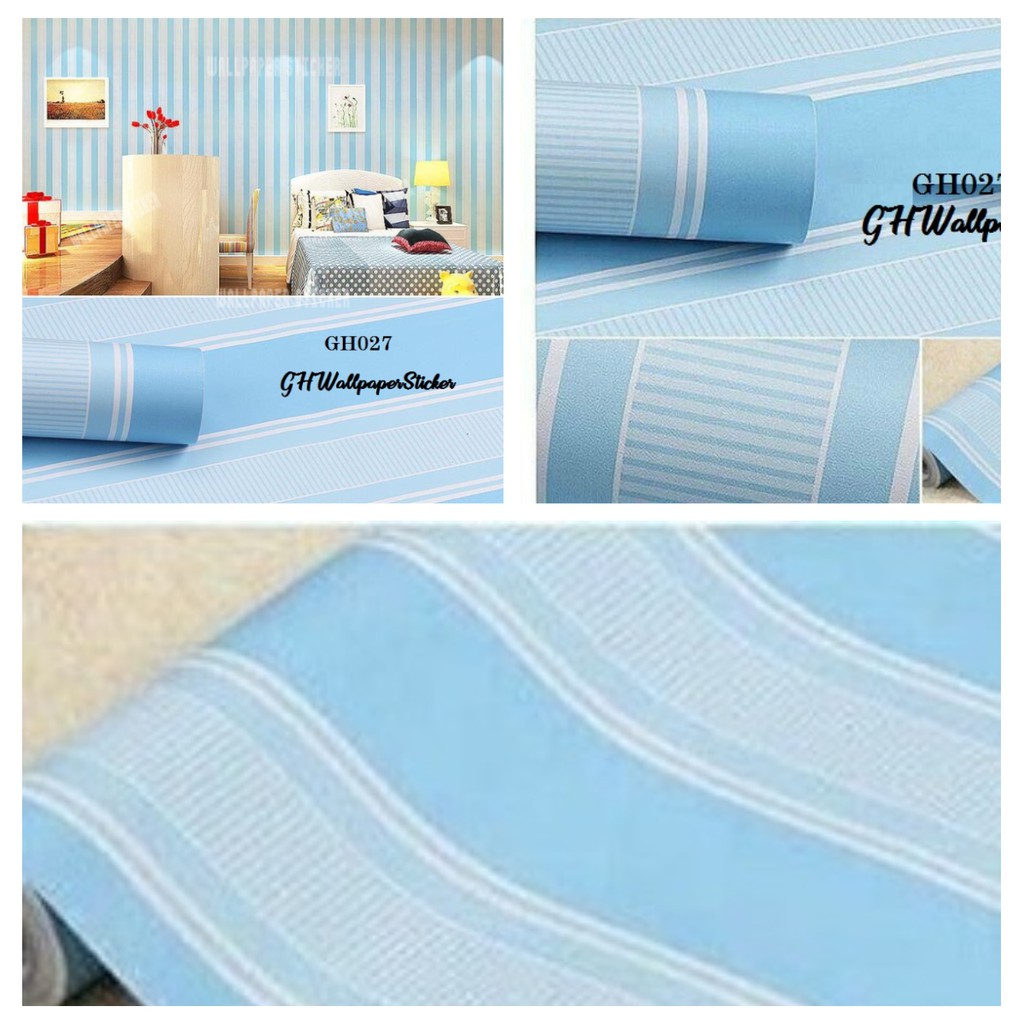 Bayar Ditempat Wallpaper Wall Sticker 45cm X 10m Salur Biru