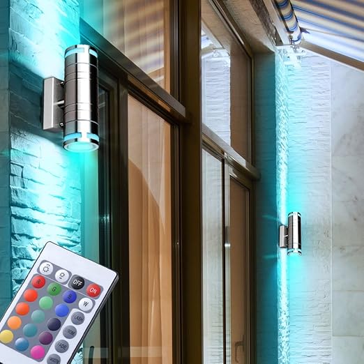 Set Of 2 Rgb Led Garden Wall Spotlight Outdoor Lamps Remote
