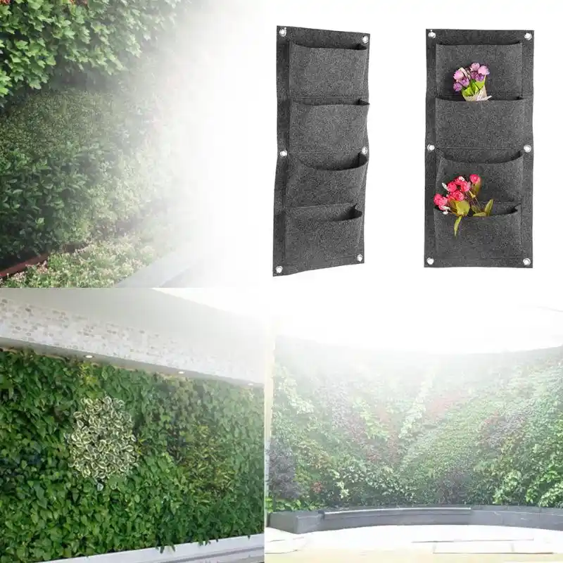 4 Pockets Gray Plant Bag Hanging Vertical Wall Garden Planter