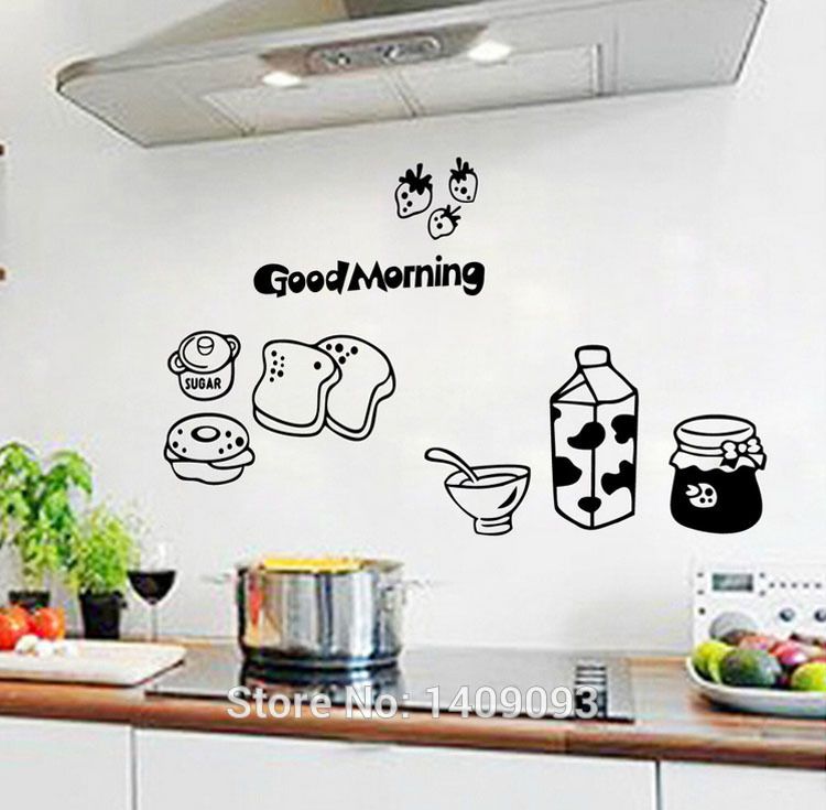 Kitchen Wall Tile Sticker Vinyl Quotes Good Morning Bread Milk
