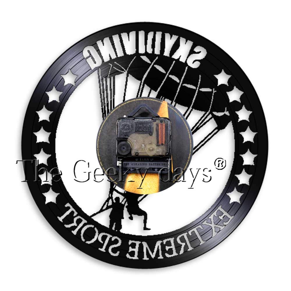 Parachute Design Wall Clock Army Wall Art Free Fly Skydiving Vinyl