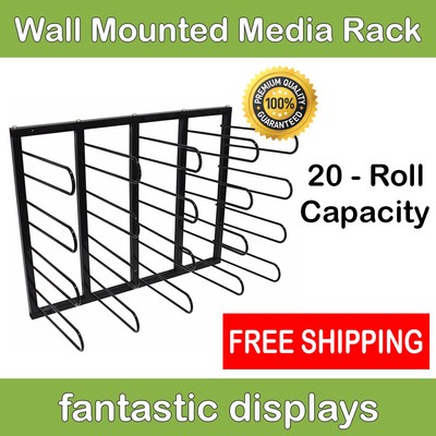 Wall Mounted Media Storage Rack Holds 20 Rolls Of Vinyl Or