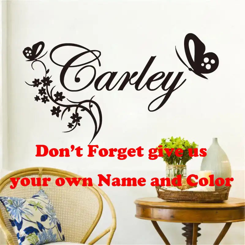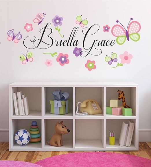 Wall Decal Butterylies Flower Personalised Name Vinyl Wall Sticker