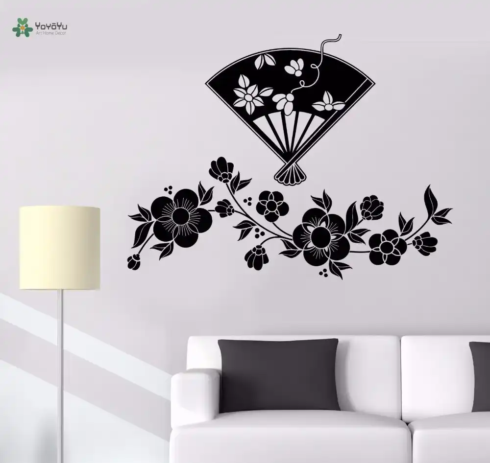 Yoyoyu Vinyl Wall Decal Flowers And Japanese Fan Beautiful Art