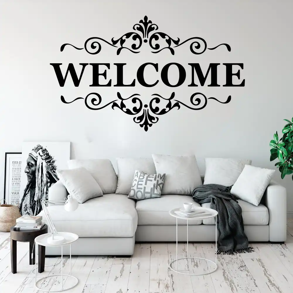 Large Welcome Quote Flower Wall Decal Living Room Kitchen Welcome