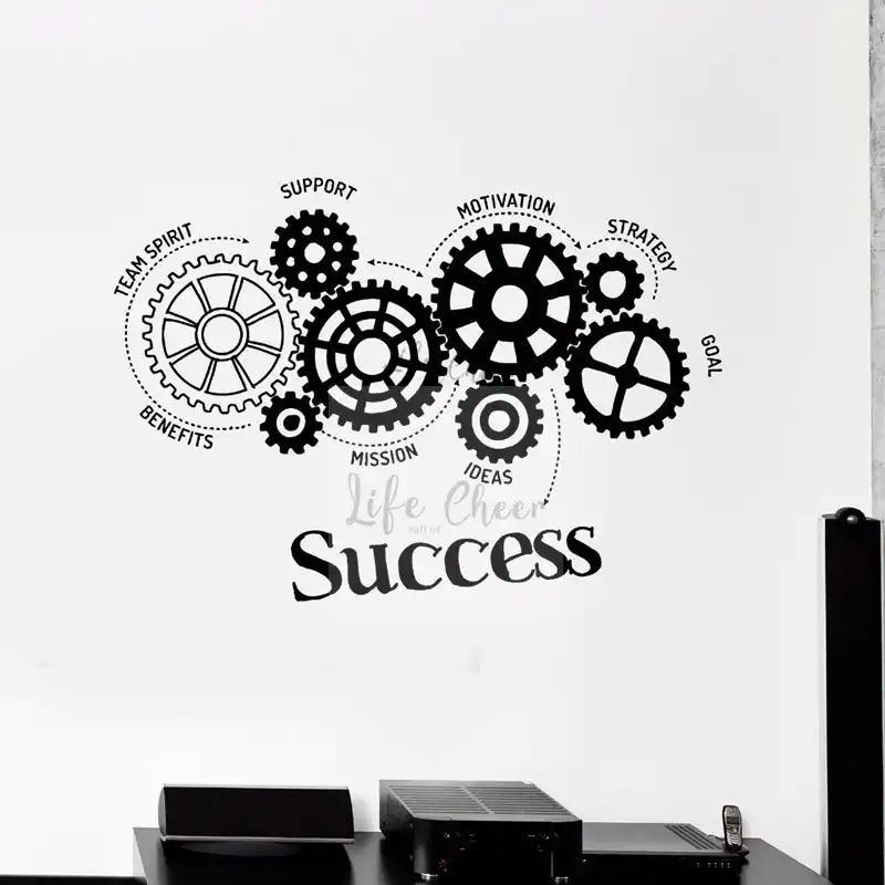 Success Gears Wall Art Sticker Team Spirit Quote Wall Decal Office