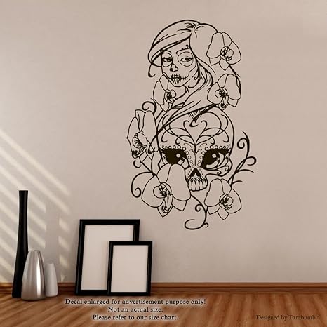 Amazon Com Voodoo Girl Wall Decals Girl Flowers Skull Big Eyes