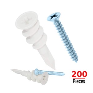 200pc Steel Self Tapping Screw Plastic Expansion Wall Anchor