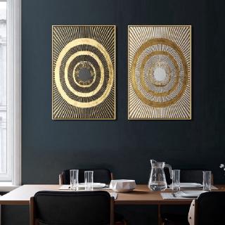 Abstract Nordic Geometric Circle Pattern Gold Canvas Print Wall