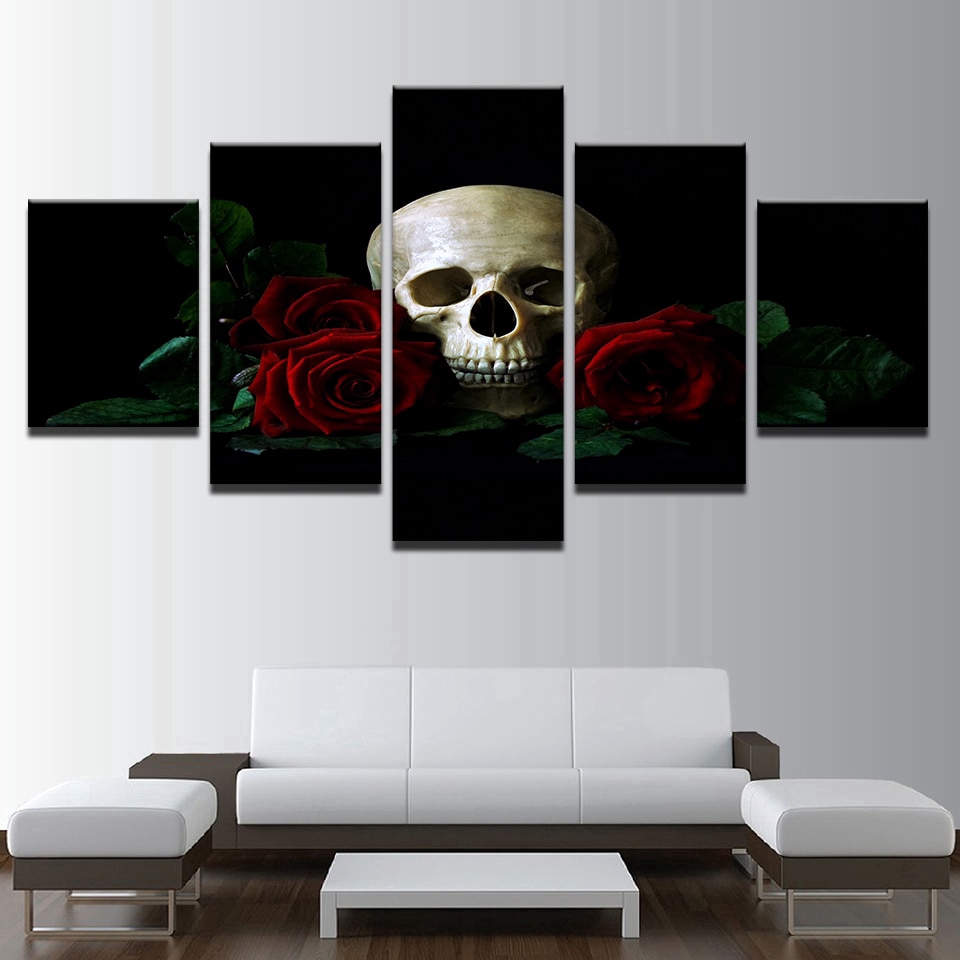 Modern Wall Art Canvas Prints Popular Modular 5 Panel Skull Rose