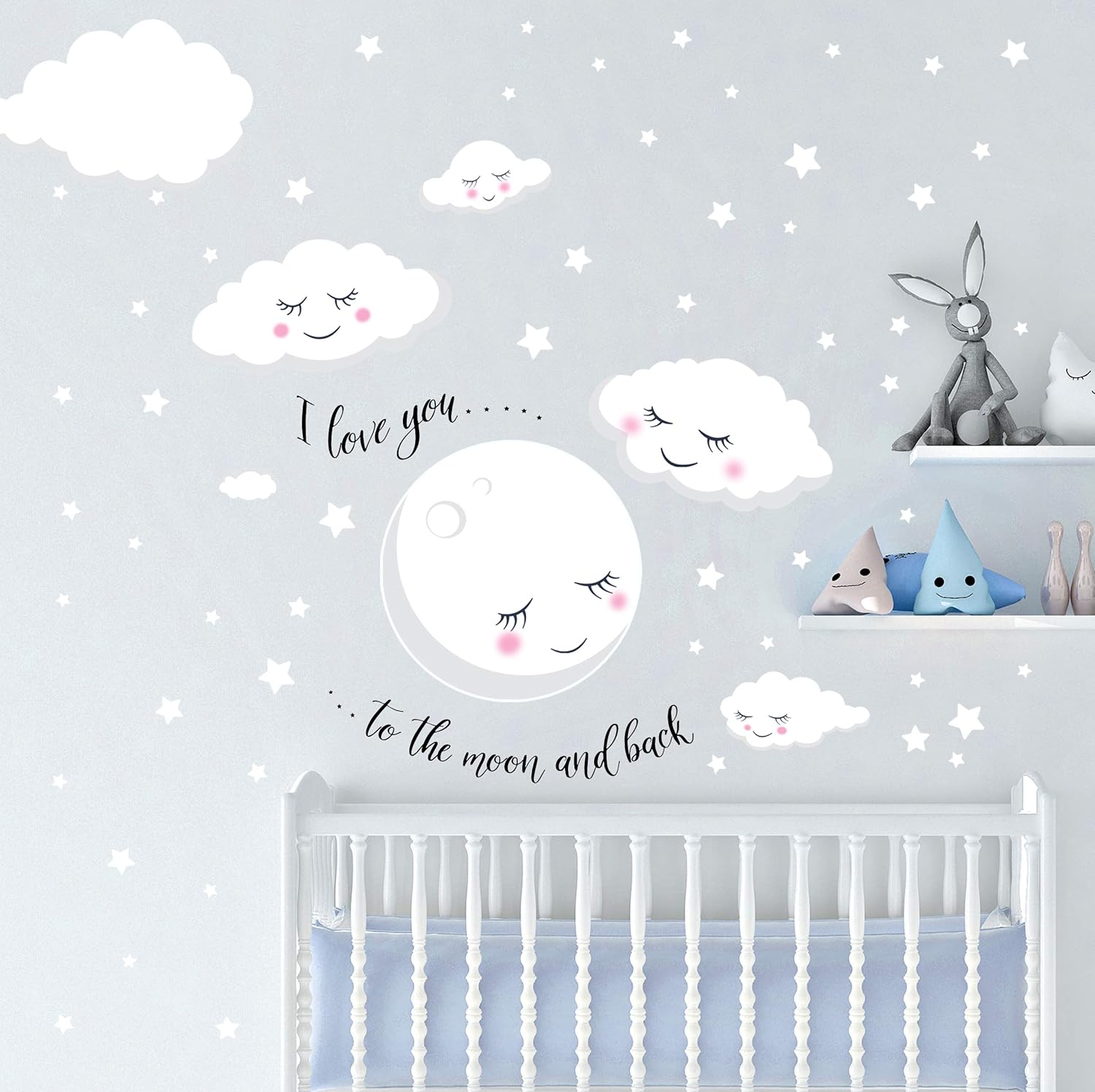 Amazon Com Create A Mural Moon And Stars Night Sky Vinyl Wall Art Decal Sticker Love You To The Moon And Back Baby Nursery Wall Decals For Girls Boys Room Decor 55 Diy Decorative
