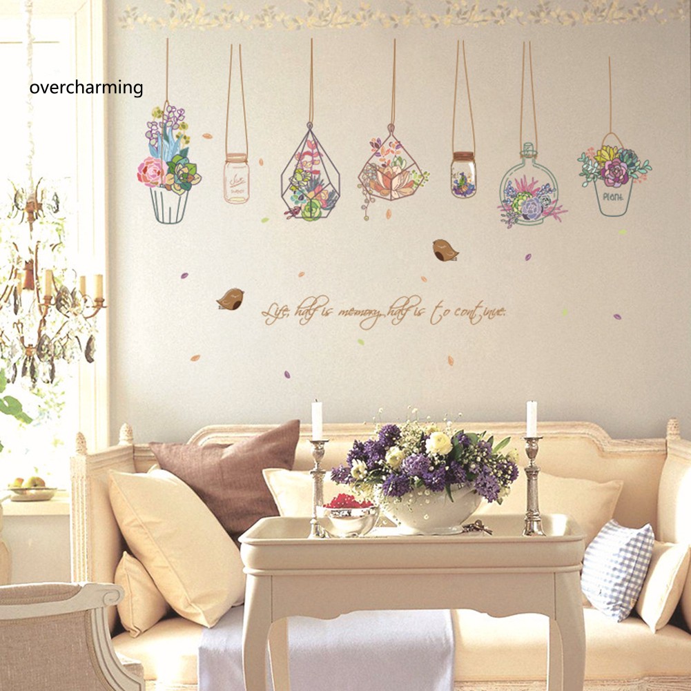 Overcharming Cartoon Flower Pot Basket Diy Wall Art Sticker