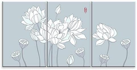 Wall26 3 Panel Canvas Wall Art Drawing Of White Lotus Flowers
