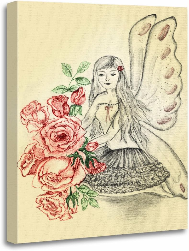 Amazon Com Torass Canvas Wall Art Print Drawing Roses Fairy