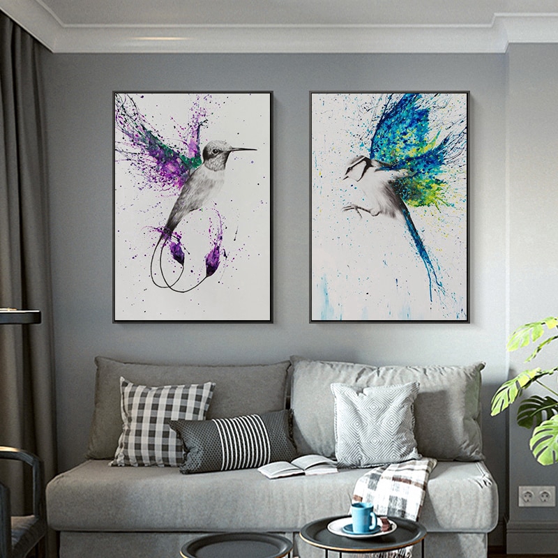 Flying Birds Color Bright Abstract Wings Canvas Painting Modern