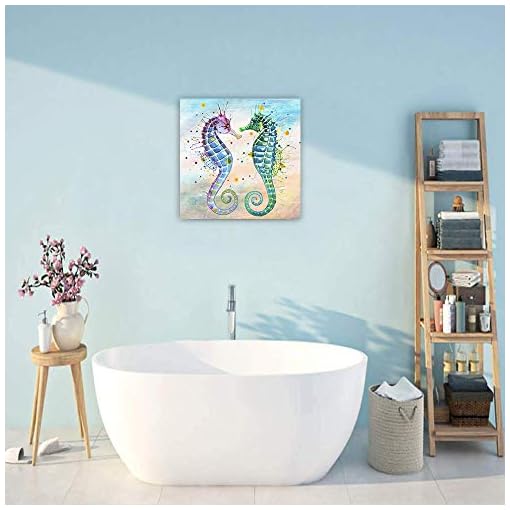 Canvas Prints Love Pair Of Seahorse Watercolor Picture Sea Ocean Nautical Coastal Art Bathroom Decor Wall Art Framed