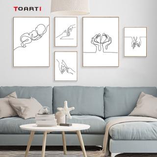 Abstract Mother And Baby Hold Hands Line Drawing Nordic Poster