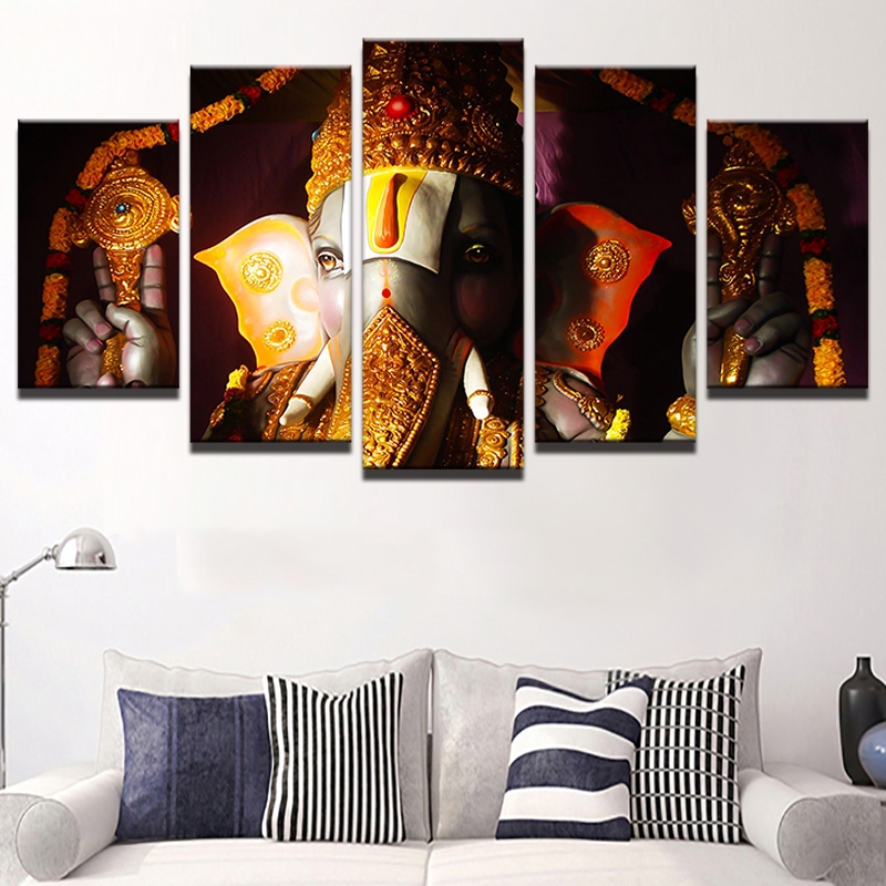 Canvas Painting 5pcs India Tibetan Ganesha Paintings Wall Art Home