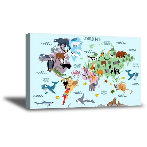Awkward Styles Kids World Map Canvas Wall Art Baby Shower Gift Kids Playroom Prints For Girls Bedroom Boys Nursery