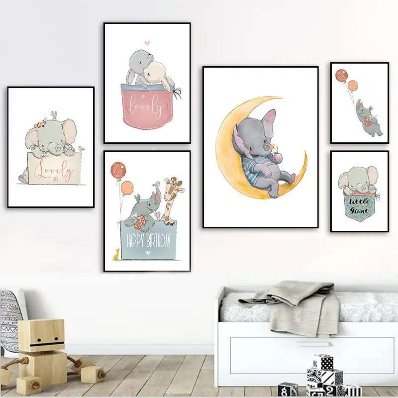 Canvas Painting Watercolor Painting Baby Animals Poster Elephant