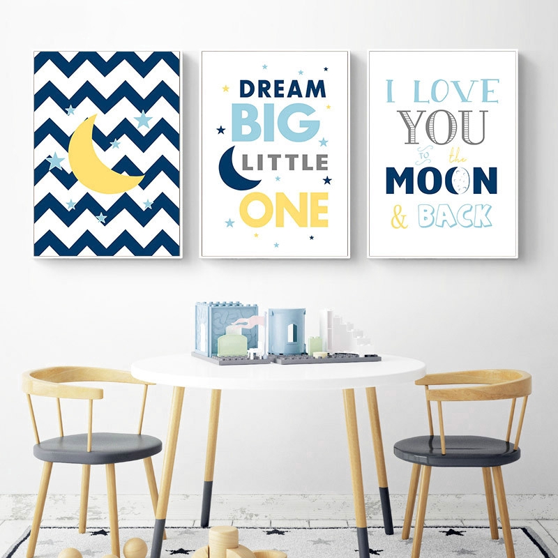 Nursery Quotes Canvas Children Poster Moon Blue Rocket Wall Art