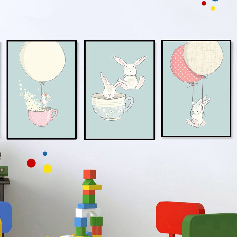 Cute Rabbit Canvas Painting Wall Art Cartoon Poster Print Nursery