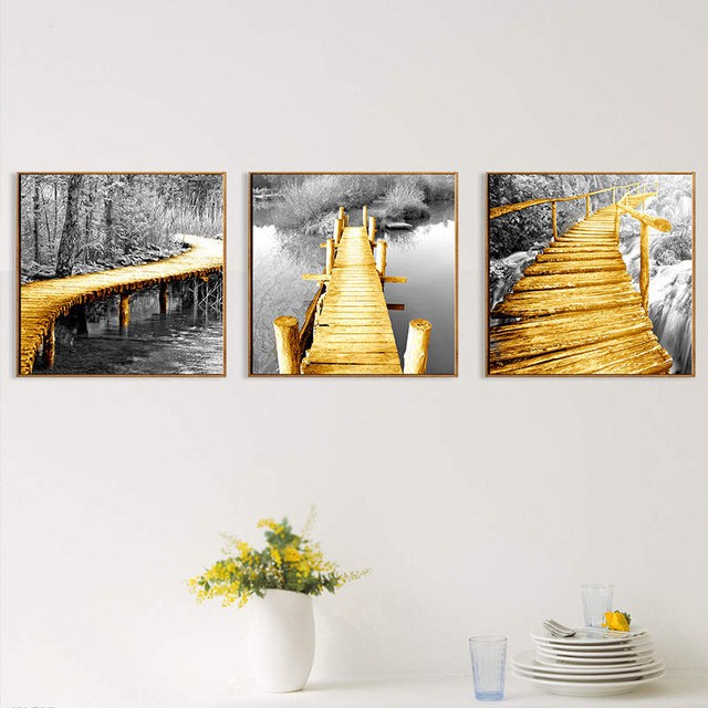 Gold Bridge To Forest Black White Photograph Realist Canvas Wall