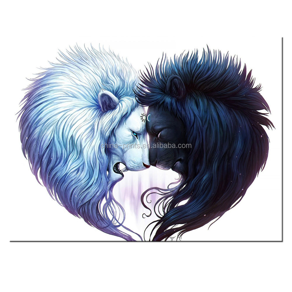 Heart Shape Lions Canvas Wall Art Handsome Lions Black And White