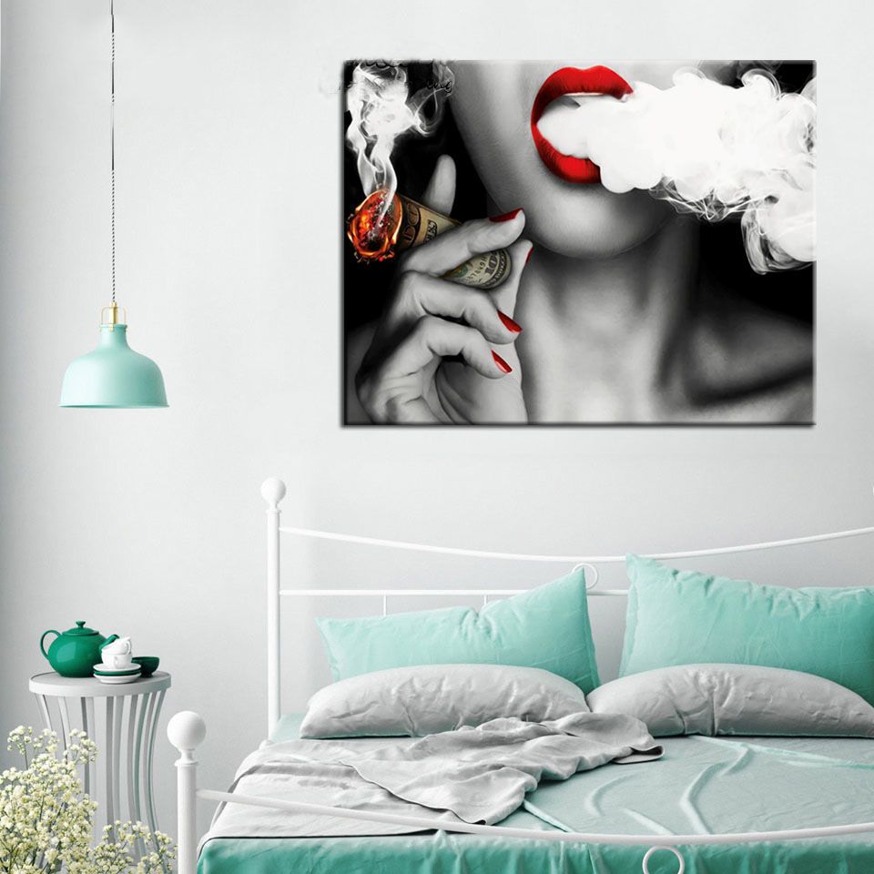 2020 Wall Art Modular Canvas Painting Women Smoke Money Hd Print