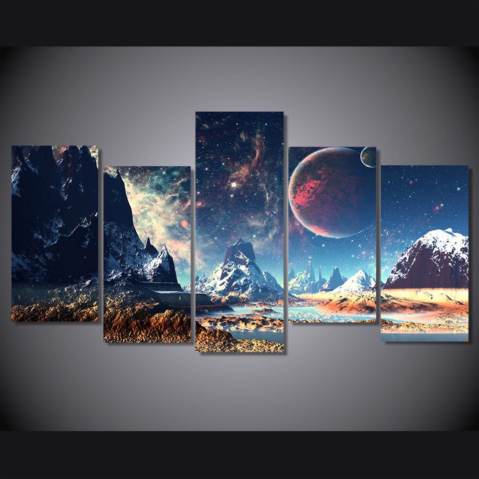 5 Pieces Canvas Prints Mountains And Space Canvas Painting Poster