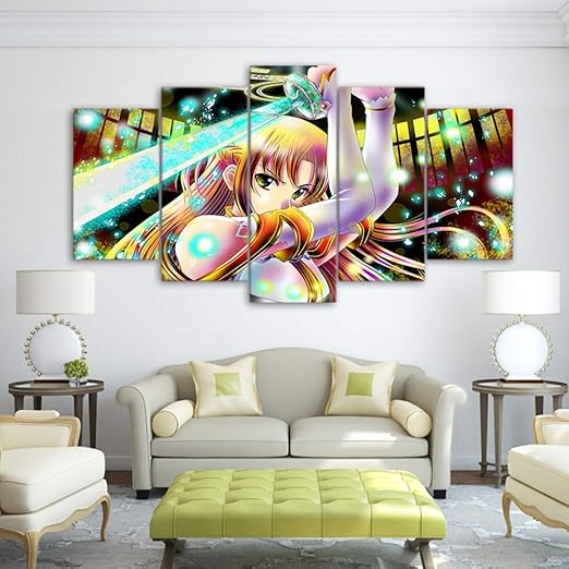 Wall Art 5 Panels Anime Prints Modern Artwork Sword Teenage Girl Pictures Pattern Paintings Print On Canvas For Home Walls Decor No Frame A 10x15x2 10x20x2 10x25x1 Amazon Co Uk Kitchen Home