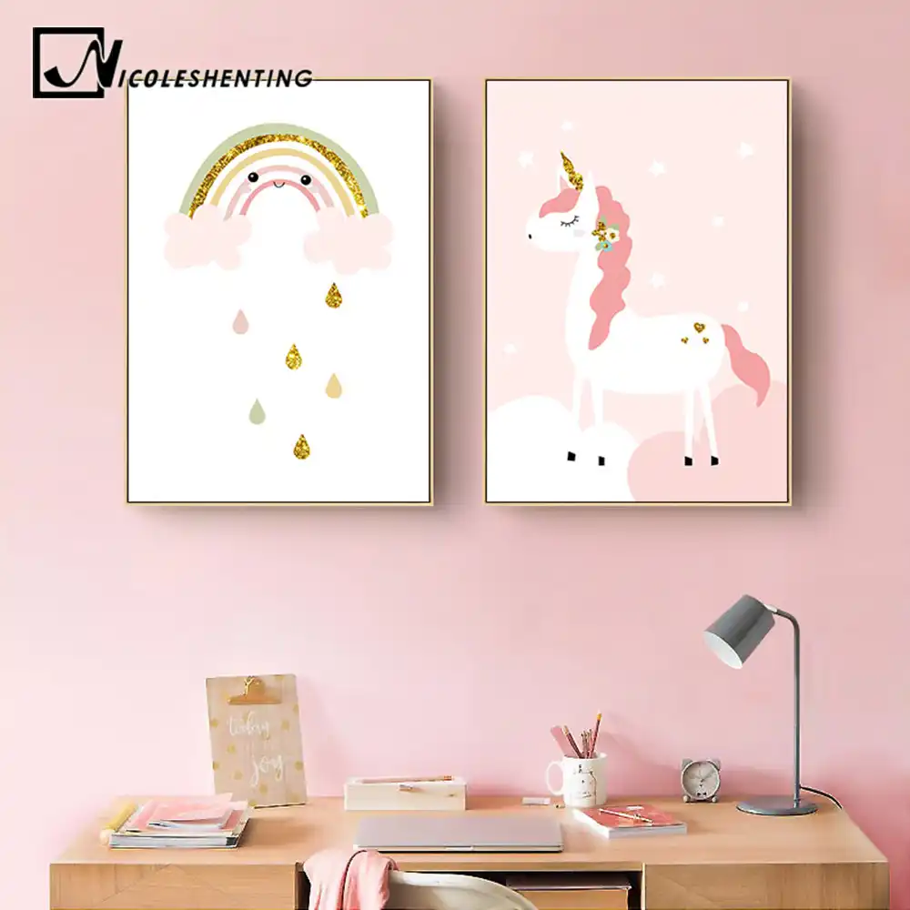 Baby Girl Nursery Wall Art Canvas Print Pink Cartoon Poster