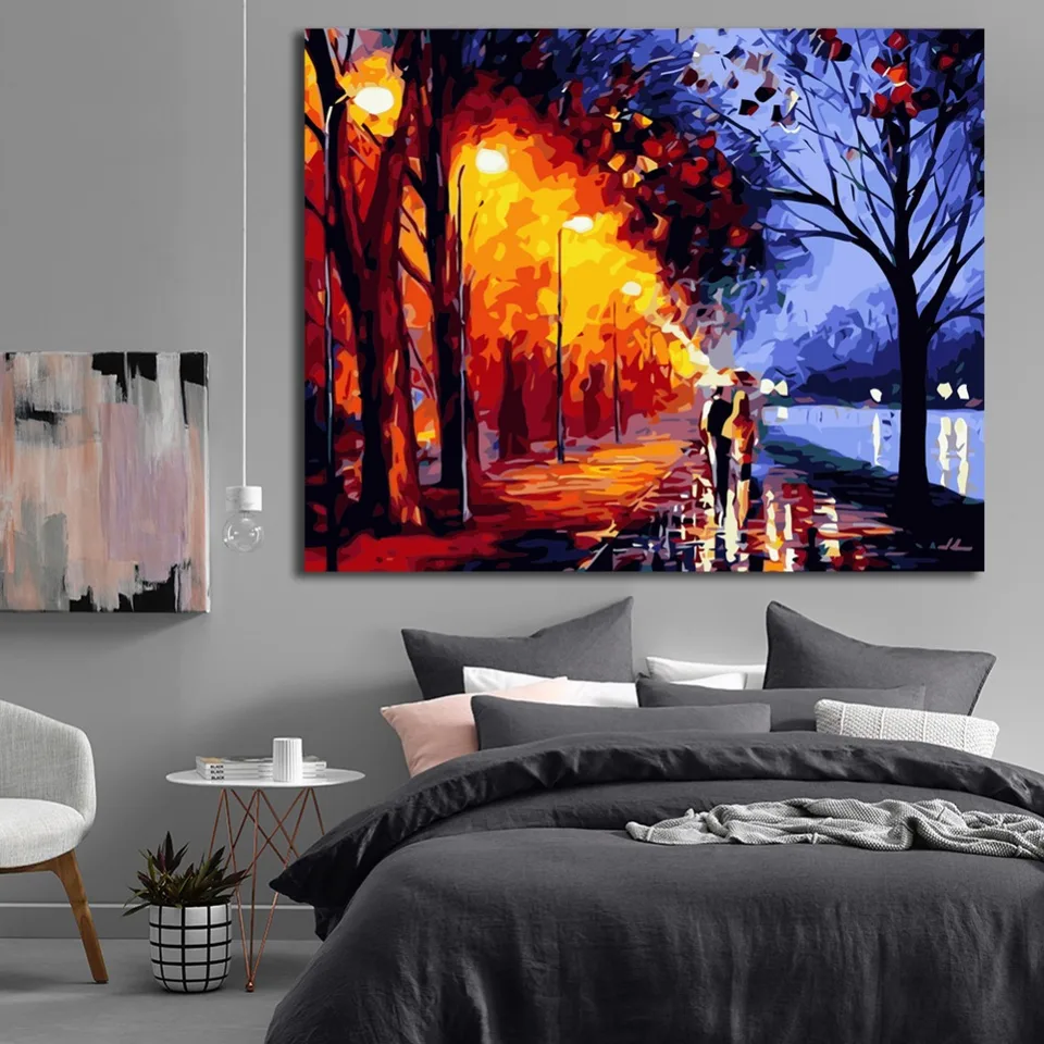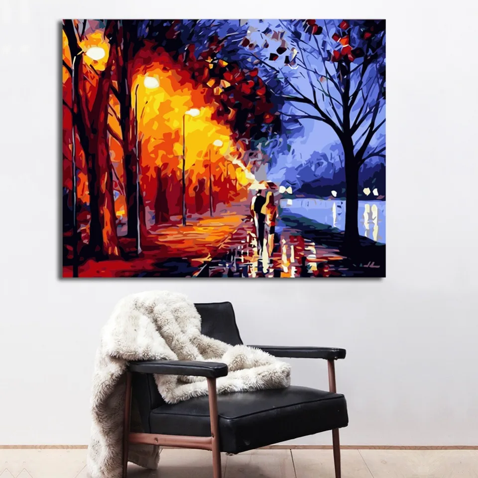 Wonzom Romantic Paint By Numbers Street Light Oil Painting On