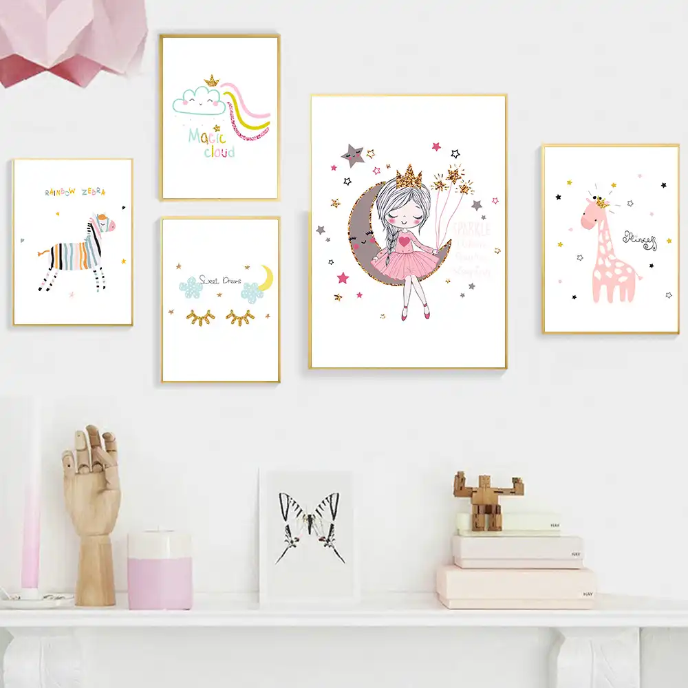 Home Decor Nordic Canvas Painting Cartoon Baby Girl Bedroom Cute