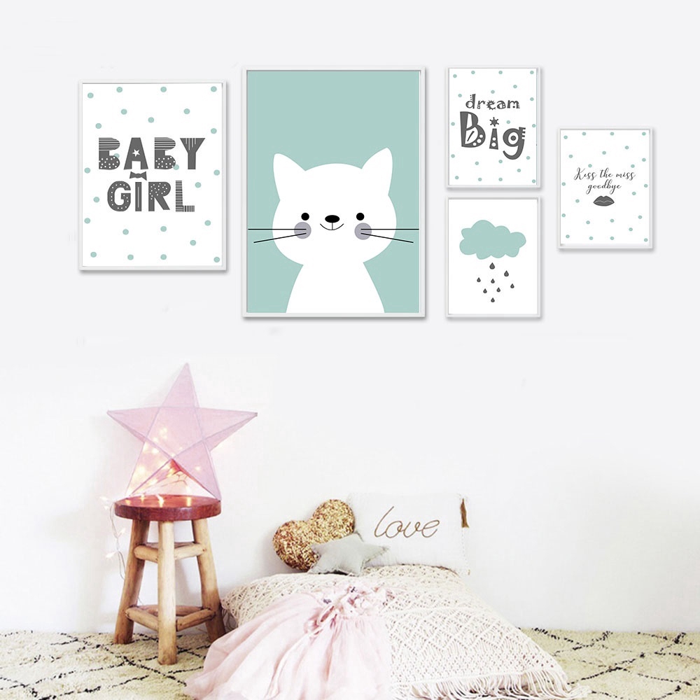 Modern Wall Painting Poster Baby Girl Room Decor Picture Cartoon