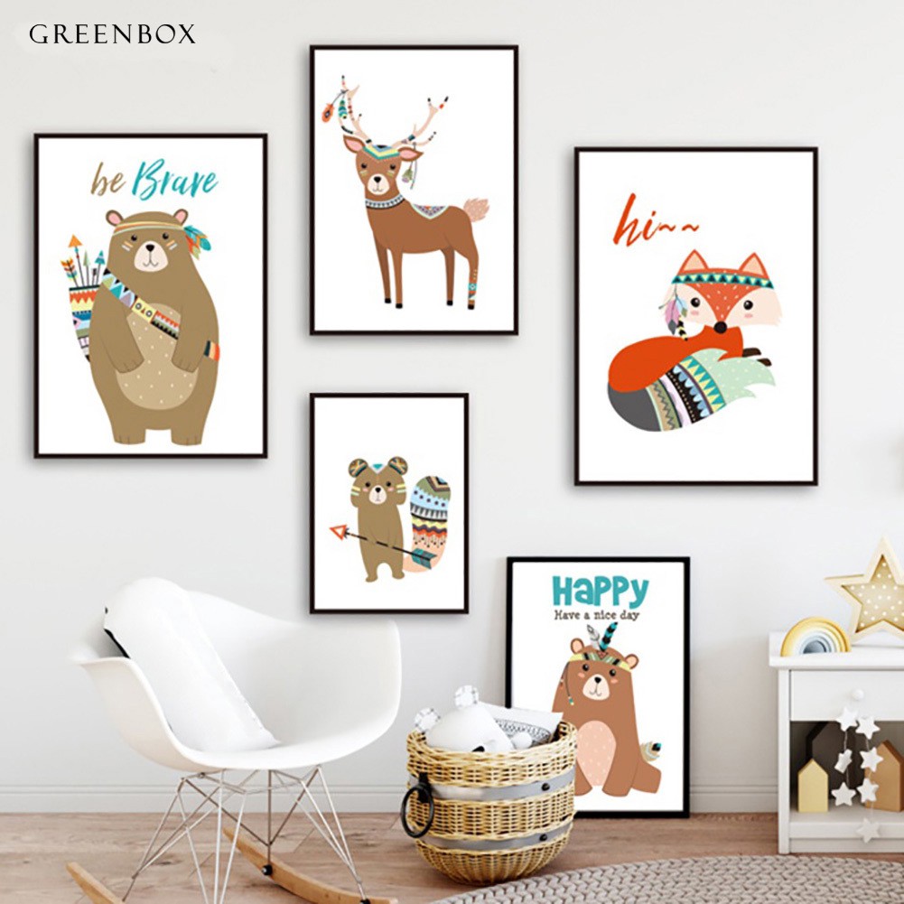 Bear Rabbit Fox Deer Nursery Wall Art Canvas Painting Cartoon