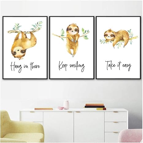 Amazon Com Cute Sloth Tree Nursery Wall Art Canvas Painting