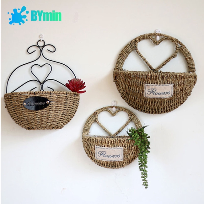Straw Basket Wall Hanging Flowerpot Wall Art Woven Planter Home