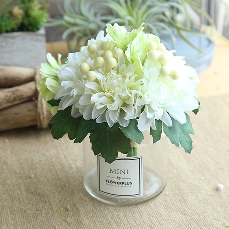 2020 Artificial Flower Dahlia Berry Bouquet Silk Green Leaf Home