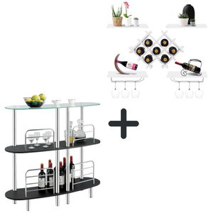 Bar Table Wine Storage Liquor Pub Table And 5 Wall Mount Wine Rack