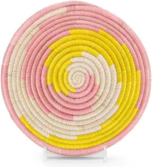 Uganda Handwoven Coil Basket Bowl African Wall Art Bright Boho