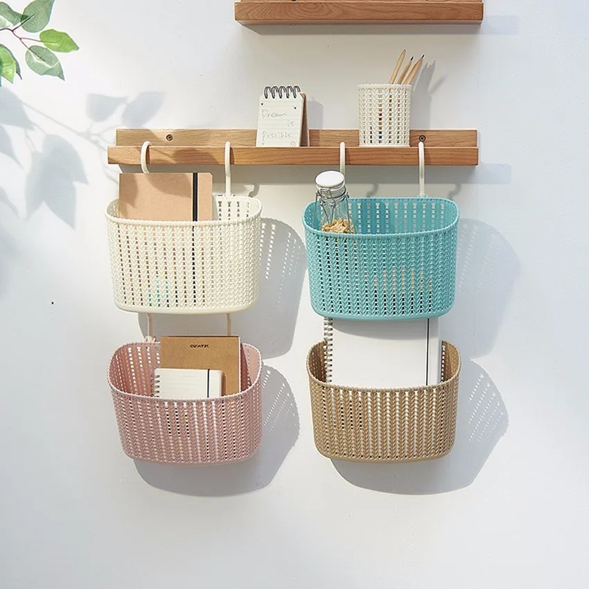 Wall Mounted Storage Baskets For Kitchen Bathroom No Hole Needed