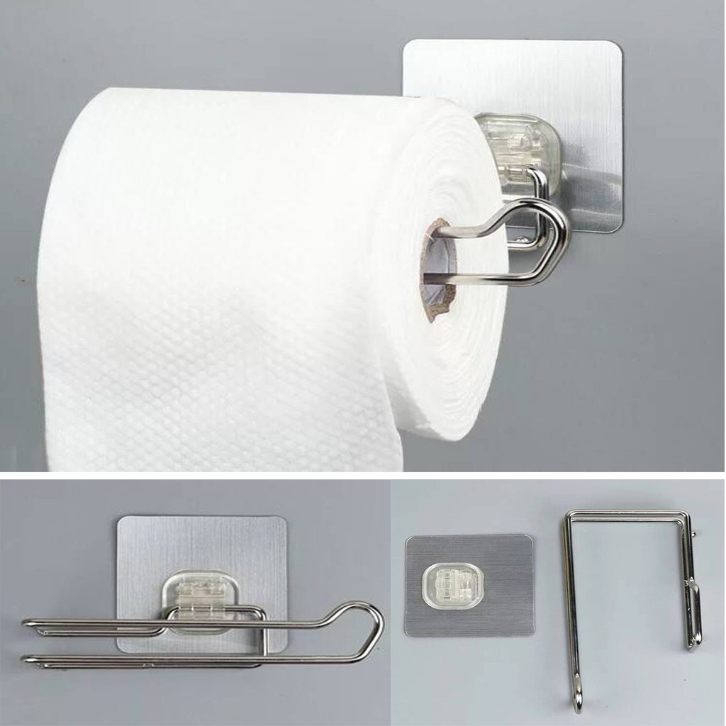 Adhesive Paper Towel Holder With Shelf Storage Wall Basket For