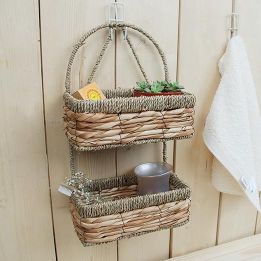 1pcs Bathroom Rattan Hanging Basket Multifunction Kitchen Storage