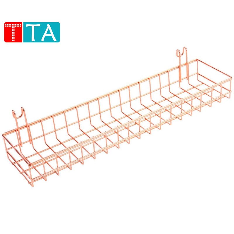 Rose Gold Grid Wall Basket Wire Wall Shelf For Wall Storage