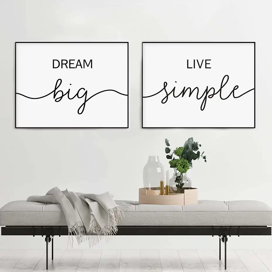 Minimalist Dream Big Live Simple Quote Canvas Paintings Black And