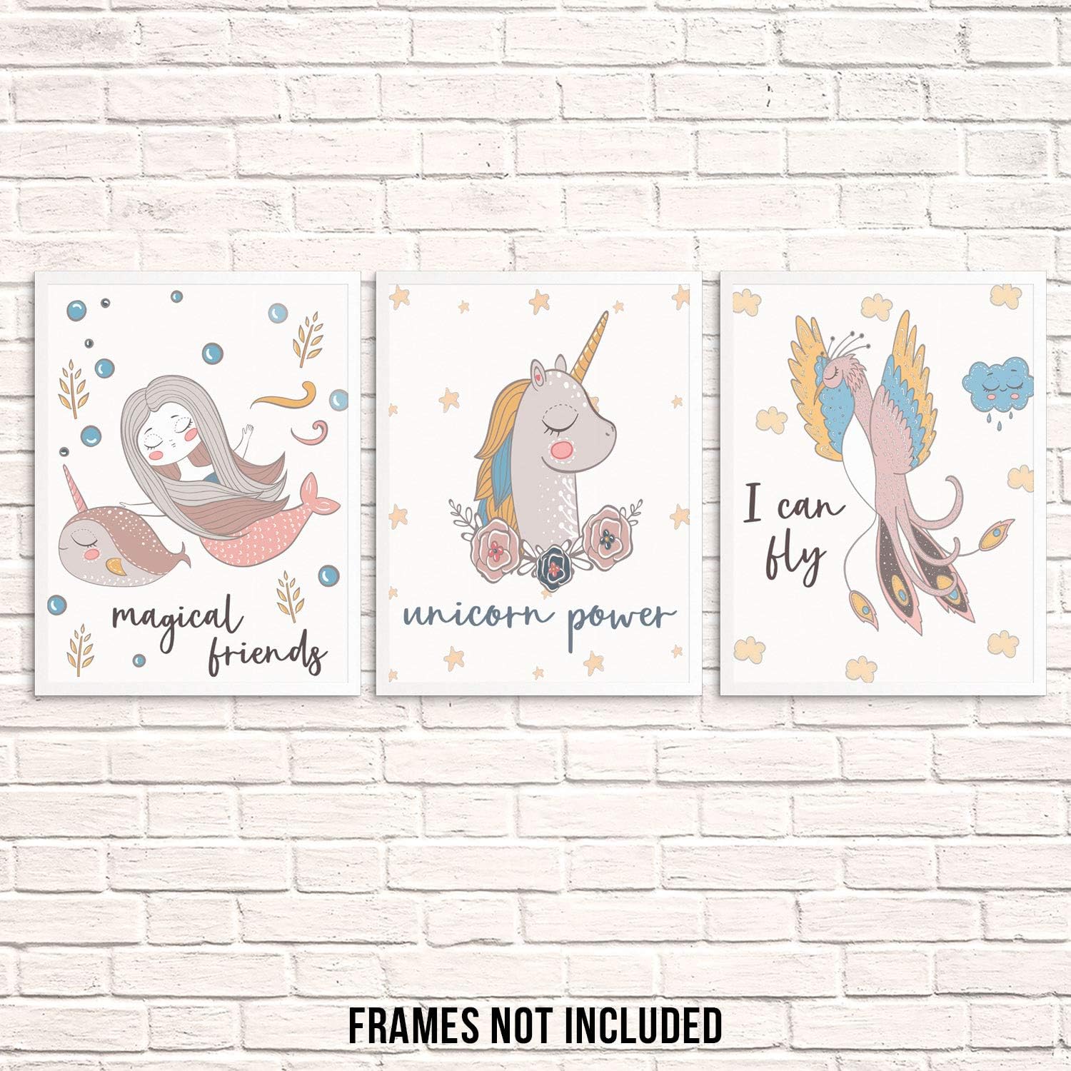 Amazon Com Girls Bedroom Art Prints Set Unicorn Mermaid And Bird